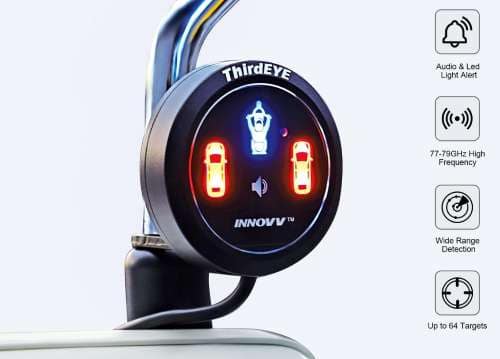 INNOVV ThirdEYE – Sistema de punto ciego para motocicleta con alerta de voz e indicadores, sistema de asistente de moto impermeable, detecta los peligros de la línea lateral y trasera. Es capaz de detectar 64 objetivos simultáneamente en una distancia máxima de 50 m