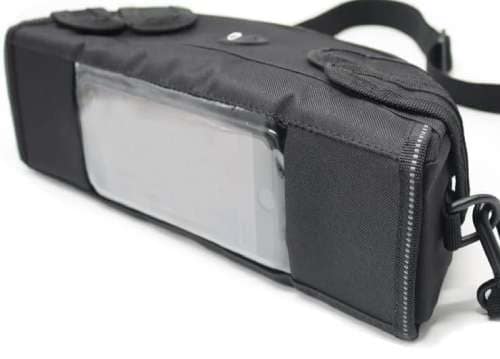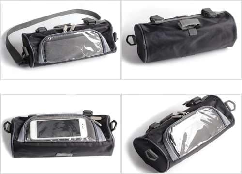 Bolsa de Almacenamiento Universal para Manillar de Motocicleta con Pantalla táctil. Diseño de concha con cremallera. Amplia aplicación. Comodo montaje y desmontaje con doble velcro en extremos.