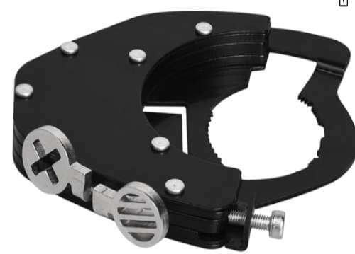 Combinación bloqueo abrazadera y descanso de muñeca. La placa superior permite establecer el agarre más seguro y apropiado, reduciendo la tensión de la mano y la muñeca. Evita tendinitis y problemas del tunel metacarpiano.