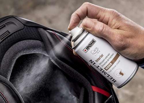Es un producto especialmente formulado para limpiar cascos sin dañarlos. A diferencia de los limpiadores domésticos, respeta los materiales delicados como las viseras, las gomas y los interiores acolchados.