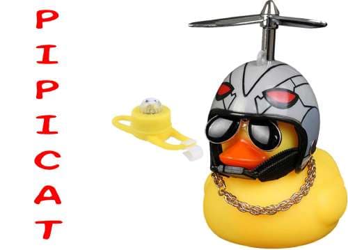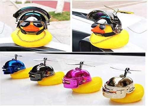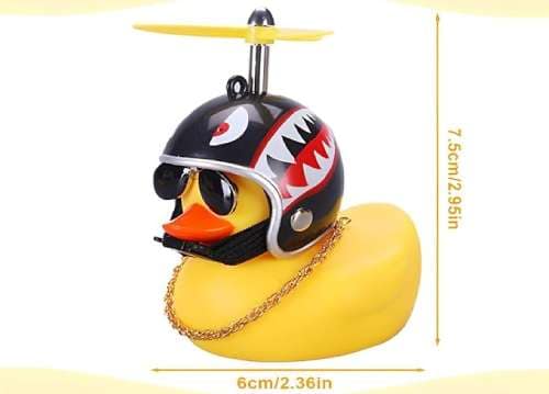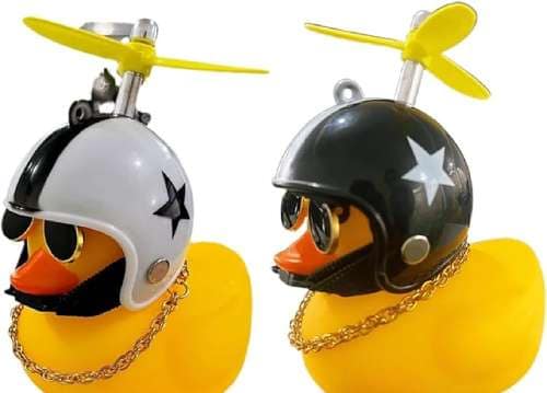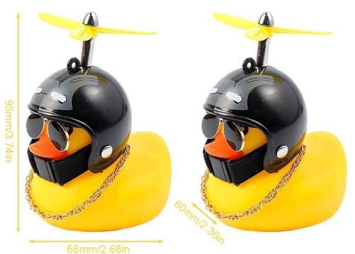 2 Piezas Patos de goma con Casco de Hélice. Material seguro: el divertido patito de goma con forma de bocina de bicicleta está hecho de silicona segura y no tóxica, que es suave, elástica y se siente bien.