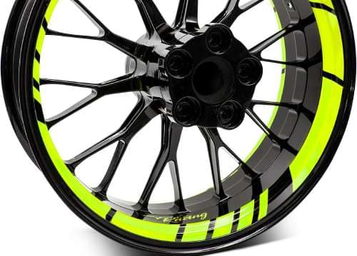 Juego de 18 pegatinas para llantas de moto, diseño completo, para llantas de 15″, 16″, 17″, 18″, 19 pulgadas, MR020 (amarillo neón)