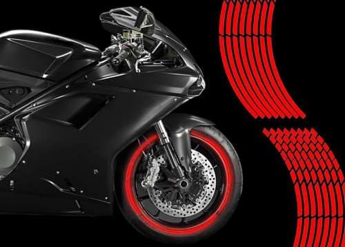 16 pegatinas para llantas moto. Suficiente para 2 ruedas y quedan 2 repuestos por rueda. Apto para llantas de 15″ a 19″ pulgadas, lo que equivale a 38 a 48 centímetros. Pegatina llanta moto disponible en rojo, blanco plateado, verde, azul y amarillo