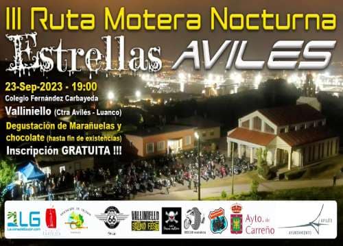 El 23 de Septiembre de 2023 La Ruta Motera cruzaba fronteras y adoptaba por primera vez el nombre de «Estrellas Avilés». En esta ocasión además de la típica ruta nocturna y del tradicional avituallamiento a base de Marañuelas de Gozón, nos sumabamos a un evento roquero, el Valliniello sound Festival, donde aterrizábamos con nuestras motos para disfrutar de varios conciertos.