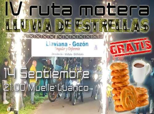 El 13 de Septiembre de 2025 la Ruta Motera Nocturna «Lluvia de Estrellas» cumplia su quinta edición, y lo hacía por todo lo alto batiendo una vez más el record de asistencia. Nada menos que 131 motos acudieron a la cita de Moteros Norteños. La reunión tenía lugar en el muelle viejo de Luanco, y tras una ruta por las carreteras del Concejo se realizaba una parada con avituallamiento en el entorno del Pantalán de San Balandrán, donde hubo la tradicional degustación de Marañuelas de Gozón y chocolate. De vuelta al muelle de Luanco se puso el broche final con una sorteo de regalos y un fin de fiesta amenizado por un DJ.