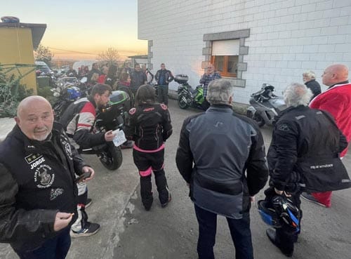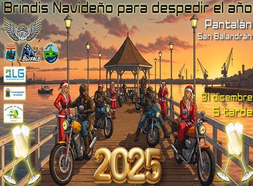 El 31 de Diciembre de 2024 junto a un buen número de amigos moteros brindamos por un feliz y motero año nuevo. Nos juntamos en dos puntos de reunión, uno en el Bar Route 66 de Avilés y el otro en nuestra Sede Social Bar La Gasolinera 27. Ambas comitivas iniciamos la marcha y nos juntamos en el Campo de la Iglesia de Laviana de Gozón, para posteriormente descender hasta el Pantalán de San Balandrán, donde por gentileza de la asociación ENLAZE brindamos con unas copas de sidra achampanada. Luego visitamos el pueblo más alto de Gozón «La Piñera» donde los vecinos nos agasajaron con chocolate y bizcochos antes de mostrarnos su particular decoración navideña.