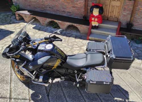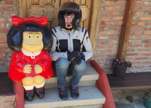 Hasta los pies de Mafalda podemos llegar en moto. Está ubicada en un domicilio particular, pero serás bien recibido tanto si vas en coche como si lo haces en moto, ya que el dueño de la casa es también motero.