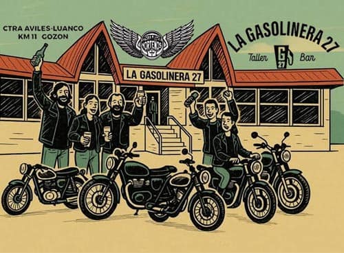 La sede de Moteros Norteños se encuentra en el Bar La Gasolinera 27, en el asturiano concejo de Gozón. Junto a una estación de servicio para que puedas repostar tu moto si nos visitas.